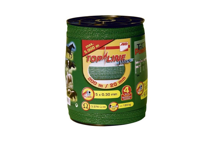 Ruban 20mm, 200 m, 5 conducteurs de 0.30 mm inox, vert