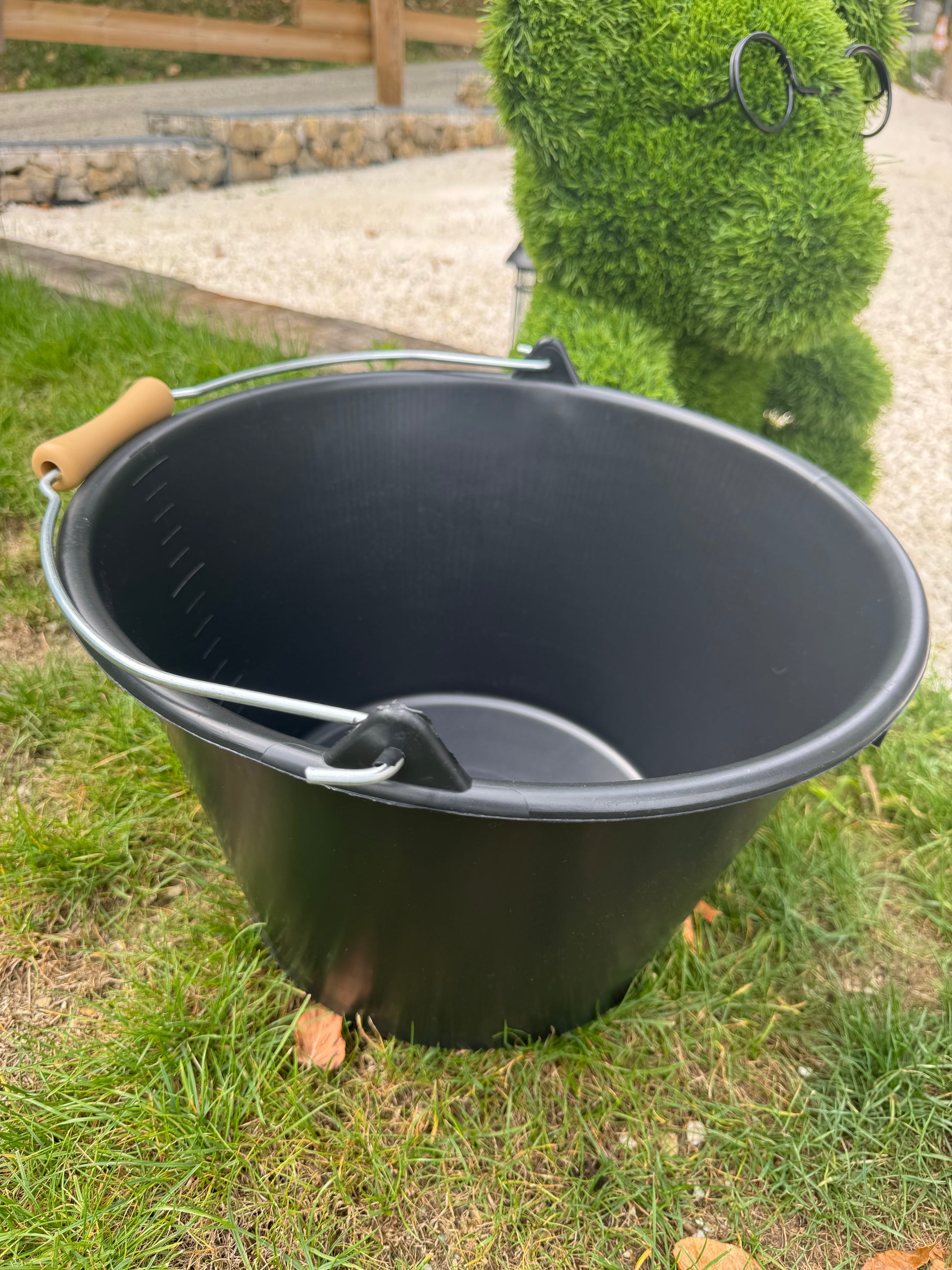 Seau 16 litres noir anse metal avec graduation a l intérieur et rouleau pour un meilleur maintient.