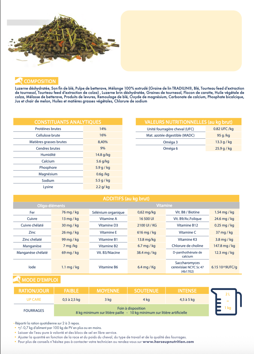 UP CARE est un aliment complémentaire de fourrages contenant des