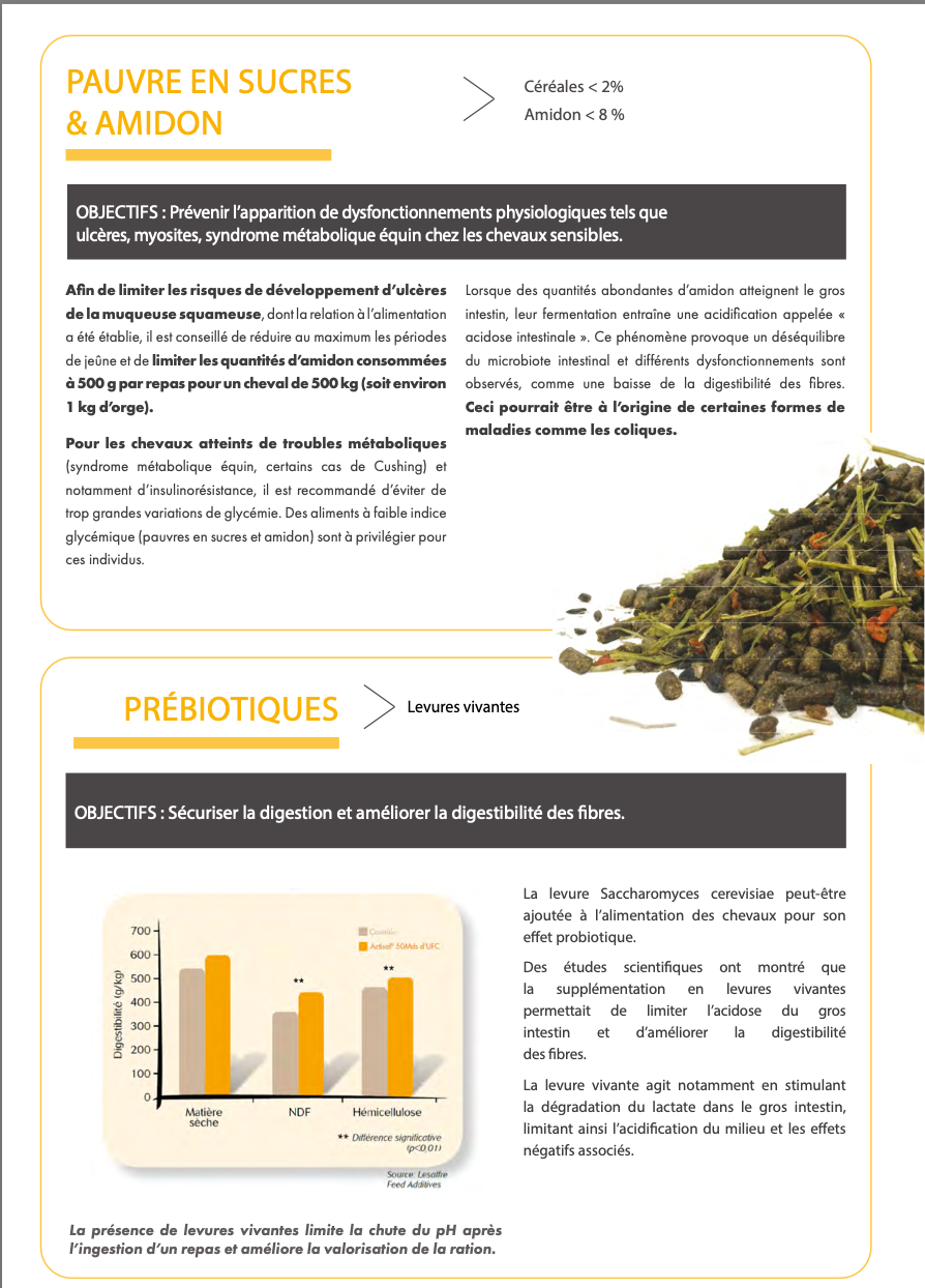 Aliment complémentaire de fourrages pour chevaux sensibles.